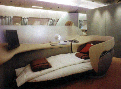 そこで、エアバス社では、将来人員大量輸送が主流となると考え、この航空機A380を開発している。 就航は2006年3月予定で、シンガポール航空が成田〜シンガポール間に投入する考えだ。 エコノミー座席も、今より広くなるらしく、流行のエコノミー症候群とはおさらばできるだろう! |