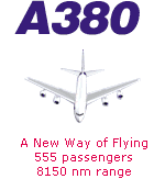 このエアバスA380は経済性に優れており環境面に配慮された航空機だ。しかも、空港の混雑緩和にも貢献する今後主流となるであろう航空機のカタチだ。 将来、大量輸送の需要は無いと見たライバル”ボーイング社”も、A380の受注が伸びているのを見て追従してくるのは必死だ! 今後は巨大さで対立することになるであろう。 |