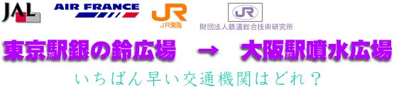 飛行機で今いる東京駅から大阪駅に行くには、まず羽田空港まで出て、関西空港からは電車で大阪駅まで行かなければならない。しかし、新幹線なら東京から直接新大阪まで行く。新大阪からは一駅で大阪駅だ。