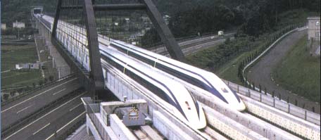 定刻どうり、リニア発車。初めは電車と同じく車輪で走行するが、高速になると電磁力で浮上し、車輪は格納する。かなり静かな乗り物だ。