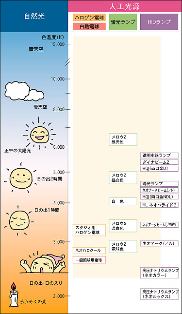 この意図的に下げられた色温度を上げようと試みた。色温度を上げたランプも店頭にはあるが、4〜5万円と高価であり、安価に出来る着色作戦を実施した。 |