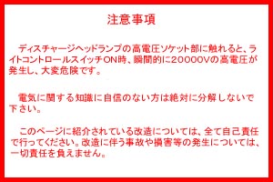 私の車、トヨタハリアーは、特定のグレードのみHIDランプが標準装備されており、それ以外のグレードにはハロゲンランプとなっている。 このことから、ハリアー開発当初はHIDランプ搭載を想定しておらず、市場投入間際になって無理矢理HIDランプの設定を実施したと思われるフシがある。 |