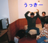 ペンション「ヨーデル」の部屋で。 旅の疲れで陽気になっている。 ペンション内マンガ部屋(写真右)。大量のマンガ・小説等がきれいに整頓されている。 夜も更けてそろそろ寝ないと明日がつらいというのに、山下は全7巻のマンガを読破するとか言って戻ってこない。結局7巻まで読んだが、まだ続きがあるらしく、続きが気になるとうるさかった。 |