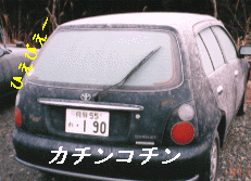 早速レンタカーを借りにトヨタレンタカーへ。借りた車はなんと今日納車したばかりの新車だった!(走行距離14km) 車内は新車の香りでむんむん。新車が欲しくなった私であった。 この車は加藤紀子のCMでおなじみトヨタスターレット。キャンペーン中ということもあって、24時間5000円で借りた。 |